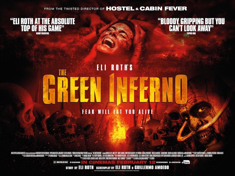 Εδώ ο Roth υποτίθεται ότι αντλεί έμπνευση από τα CANNIBAL HOLOCAUST και CANNIBAL FEROX όμως οι δικοί του κανίβαλοι σε καμία περίπτωση δεν έχουν εκείνη την βάναυση γεύση των αντίστοιχων της δεκαετίας του 80. Το THE GREEN INFERNO λειτουργεί περισσότερο σαν μια Gore μαύρη κωμωδία παρά σαν ένα στιβαρό Exploitation φιλμ με κανίβαλους. Διάολε εδώ σε μια φάση ένα από τα υποψήφια θύματα τους κατορθώνει να μαστουρώσει ολόκληρο το χωριό των σαδιστών και ανθρωποφάγων ιθαγενών με …ένα πακετάκι μαριχουάνα ενώ το Gore περισσότερο γέλωτα θα σου βγάλει παρά γνήσιο τρόμο…