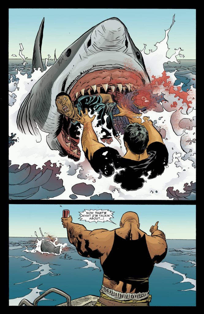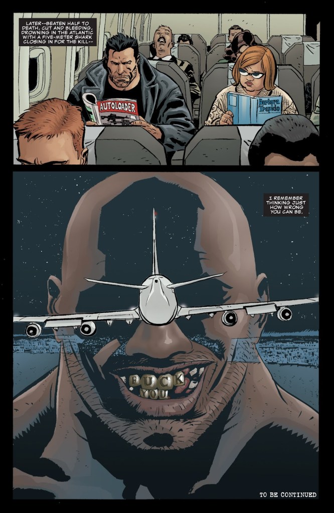 Οι αναμετρήσεις ανάμεσα σε Punisher και Barracuda αποτελούν χαλαρά το αλατοπίπερο αυτού του arc μιας και περιλαμβάνουν βρομόξυλο, μαχαίρια , τσεκούρια, αρκετά ακρωτηριασμένα μέλη του σώματος και έναν …γαμημένο καρχαρία !