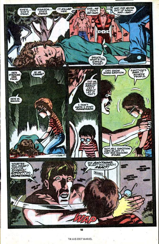 Η ιδέα αυτή γεννήθηκε στο μυαλό του David μέσα από τις διδαχές του συναδέλφου και προκατόχου του Bill Mantlo που κατά την διάρκεια του δικού του run στον κόσμο του HULK , συγκεκριμένα στο τεύχος #314, εδραίωσε το γεγονός ότι ο Bruce υπέστη κακοποίηση όταν ήταν ακόμη παιδί.