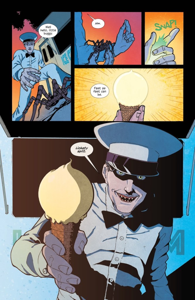 Φαινομενικά τα διάφορα περιστατικά δεν φαίνεται να σχετίζονται άμεσα μεταξύ τους. Όμως να που ξύνοντας την επιφάνεια τους θα αντιληφθείς ότι η φρίκη τους φαίνεται να πηγάζει από την δραστηριότητα ενός creepy ‘παγωτατζή‘. Ο άντρας αυτός είναι κάποιου είδους ανίερο πλάσμα μασκαρεμένο σε θνητό. Ο ‘παγωτατζής‘ τριγυρνά στην πόλη και φροντίζει κάθε λίγο και λιγάκι να δίνει σε προβληματικούς ή πληγωμένους κατοίκους της το παγωτό με την ‘γεύση‘ που τους ταιριάζει.