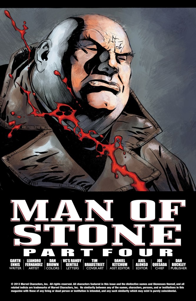 Στο ‘Man of Stone’ οι Ennis και Fernandez μας θυμίζουν ότι ο ‘Τιμωρός’ είναι μια δύναμη που δεν θα σταματήσει το έργο της, μέχρι τουλάχιστον να βρεθεί κάποιος που θα μπορέσει να την καταπλακώσει με έναν βράχο…
