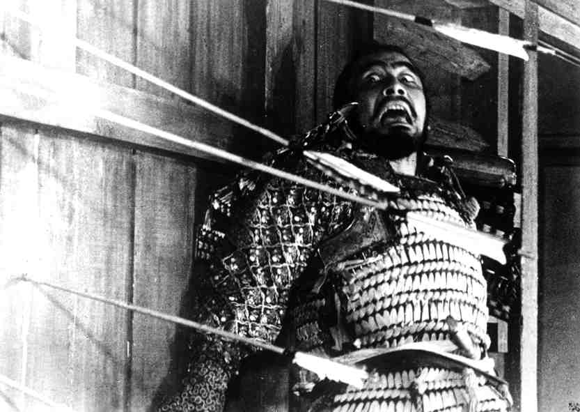 Στο THRONE… o ανεπανάληπτος Toshiro Mifune υποδύθηκε με εξαιρετικό τρόπο έναν άντρα που αφού χύσει με το κατάνα του το αίμα αθώων στην συνέχεια νιώθει να συνθλίβεται υπό το βάρος της ενοχής. Κάθε βέλος που δέχτηκε στο φινάλε αυτής της ταινίας φάνταζε ως μια απόλυτα ταιριαστή τιμωρία. Ο Mifune πραγματικά έριξε το βάρος μιας ‘κατάρας‘ επάνω στους ώμους του χαρακτήρα του.