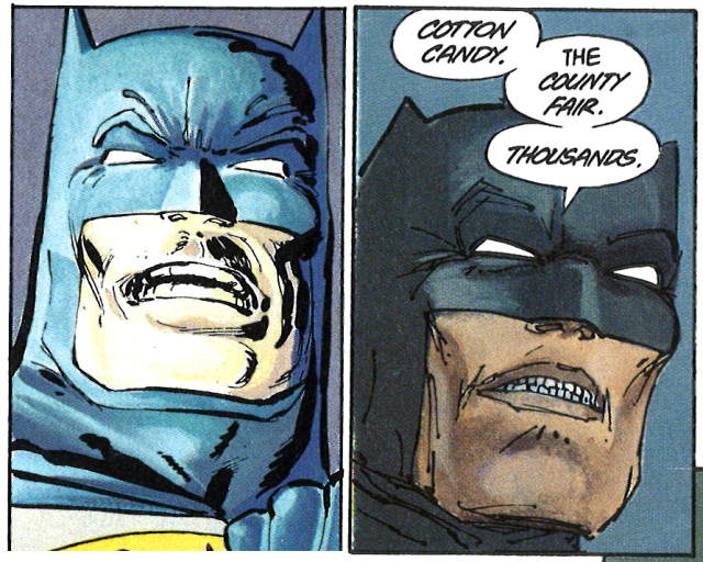 Στην μίνι σειρά του με τίτλο THE DARK KNIGHT RETURNS (ο αυθεντικός τίτλος ήταν BATMAN : THE DARK KNIGHT ενώ το κάθε τεύχος ξεχωριστά είχε και από έναν διαφορετικό υπότιτλο) , και η οποία μέτρησε αρχικά μόλις τέσσερα τεύχη, ο συγγραφέας και σκιτσογράφος Frank Miller τοποθέτησε τον Bruce Wayne σε έναν εναλλακτικό μέλλον και σύμπαν.