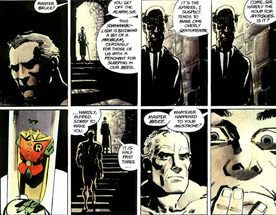 Ο Bruce Wayne του Miller κουβαλά ολοφάνερα επάνω του το βάρος μιας ζωής γεμάτη πόνο και μόχθο. Ο πόλεμος ενάντια στο έγκλημα άφησε άφθονα σημάδια τόσο επάνω στο κορμί του όσο και στον ψυχισμό του. Να όμως που εδώ ο μεγαλύτερος ‘πόνος‘ που κατακλύζει τον Bruce δεν οφείλεται σε κάποιο τραύμα του παρελθόντος αλλά στην αποχή του από την μάχη κόντρα στην εγκληματικότητα.