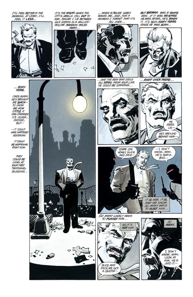Πριν ο Frank Miller αναλάβει την τύχη του Batman και άλλοι συγγραφείς και καλλιτέχνες οραματίστηκαν και απεικόνισαν τον χαρακτήρα σαν έναν ‘κυνηγό της νύχτας‘ που θα κινούνταν μέσα σε ένα σκληρό και νουάρ περιβάλλον. Σε αυτόν τον τίτλο ο Frank ουσιαστικά εξελίσσει τις διδαχές και την κληρονομιά των Denny O’Neil και Neal Adams στο επόμενο επίπεδο. Αλλά ήταν ο Miller εκείνος που μας παρουσίασε την μακράν πιο την πιο ‘γκρίζα‘ , ρεαλιστική και ωμή εκδοχή του.