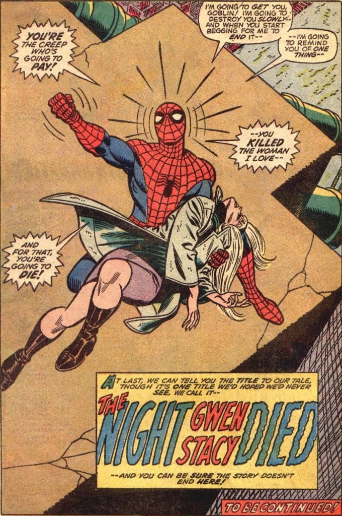 “The Night When Gwen Stacy Died“, το arc των Gerry Conway (σενάριο), Gil Kane (σκίτσο) και John Romita Sr. (μελάνια) μέσα από μόλις δύο τεύχη (#121~122) άλλαξε ριζικά το ύφος και τον ψυχισμό τόσο του THE AMAZING SPIDER~MAN τίτλου όσο και του ήρωα του.