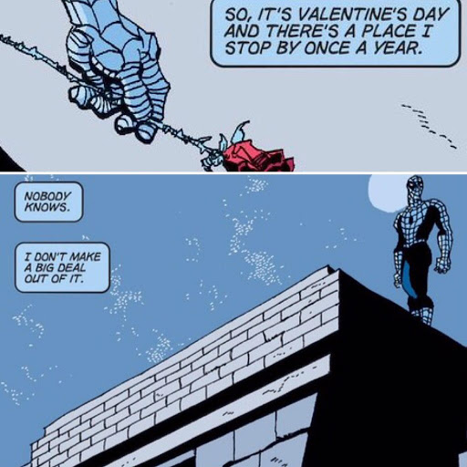 Το mini~series (που αποτελείται από έξι τεύχη) με τίτλο SPIDER~MAN : Blue ξεκινά ανήμερα του Αγίου Βαλεντίνου και με τον ήρωα μας να αφήνει ένα τριαντάφυλλο στην γέφυρα που πριν από σαράντα χρόνια αποτέλεσε σημείο της μεγαλύτερης και πιο επίπονης “αποτυχίας” του…