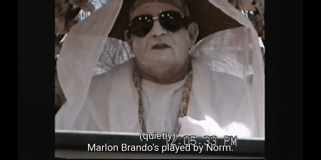 Ιδου το Hollywood που πιστεύει ότι μπορεί να αντικαταστήσει τον Marlon Brando με έναν “Norm”. Ο παραλογισμός και η ηλιθιότητα μιας τέτοιας κίνησης δεν διαφεύγει από τον Val. Το καταλάβαινες από την αντίδραση του.