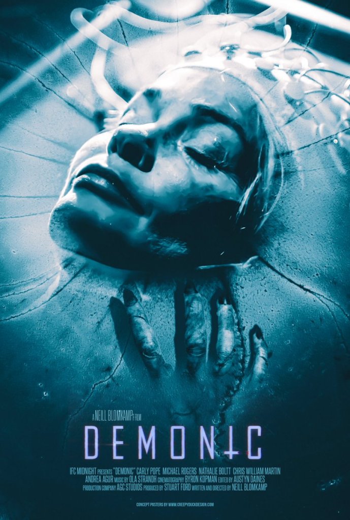 Στο DEMONIC ένας έκπτωτος Neil Blomkamp αναλαμβάνει είτε επαγγελματική αγγαρεία ή απλά προσπαθεί να “ξεμουδιασει” από τις απανωτές καραντίνες, γυρνώντας ένα sci~fi / Horror φιλμ που το μπάτζετ του παίζει να κοστίζει όσο κόστιζε μισή γαρίδα από το DISTRICT 9 ντεμπούτο του.