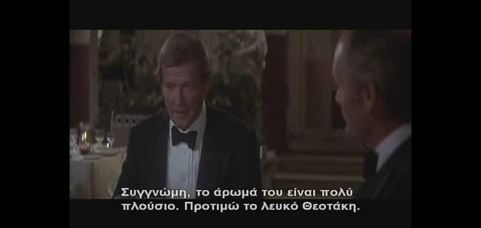 Το FOR YOUR EYES ONLY γυρίστηκε εν μέρη στην Κέρκυρα (που εδώ στην πρώτη πράξη λειτουργεί και ως “Ισπανία). Το να ακούς τον Topol να μιλάει Ελληνικά με προφορά έχει την φάση του ενώ από την μεριά του ο Bond δεν χάνει (πάλι) την ευκαιρία να πουλήσει μούρη μοστραροντας τις γνώσεις που έχει επάνω (και) στην Ελληνική γαστρονομία και τα κρασιά μας!